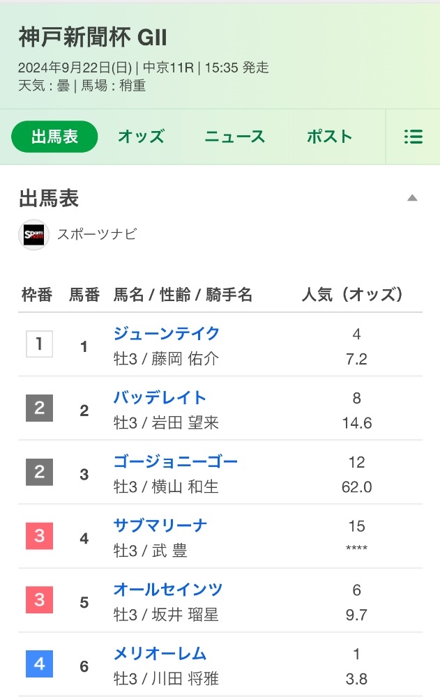 神戸新聞杯の発走まであと5分やから