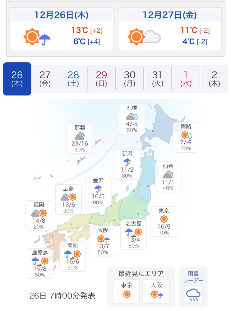 本日の天気予報を
