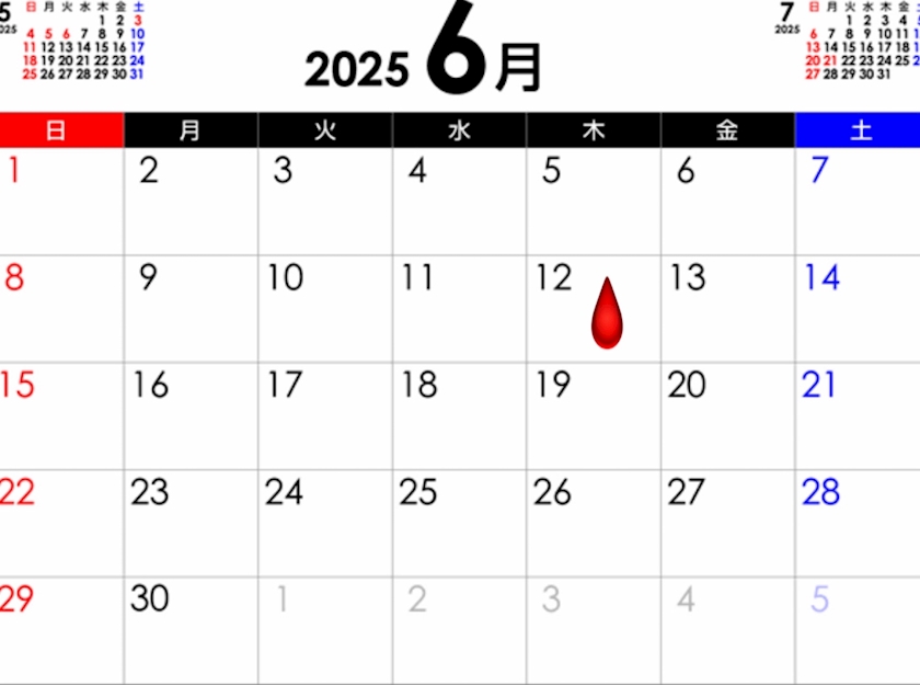 本日、生理が