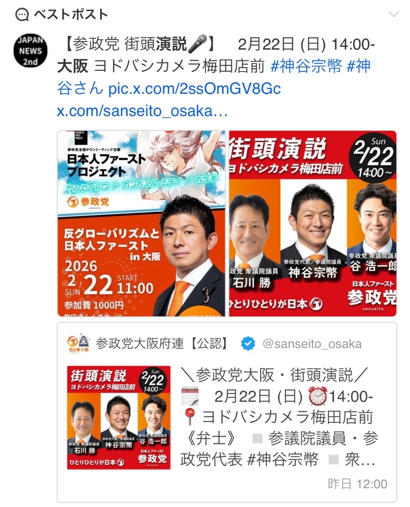 - 【番外編】残る演説者...その刺客は参政党の神谷宗幣氏~2/22大阪梅田にて~