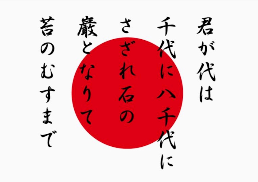 - 君が代は千代にハ千代にさざれ石の~いわおとなりて 苔のむすまで.............