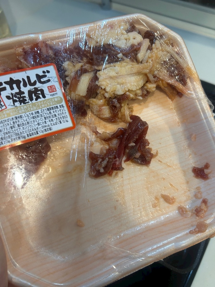 これは残り物なんだがこの焼くだけでOKのタレ付き牛カルビ焼肉を