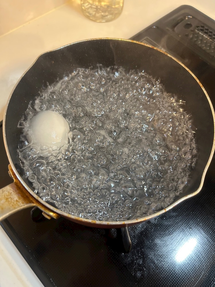 この卵を湯煎しよう