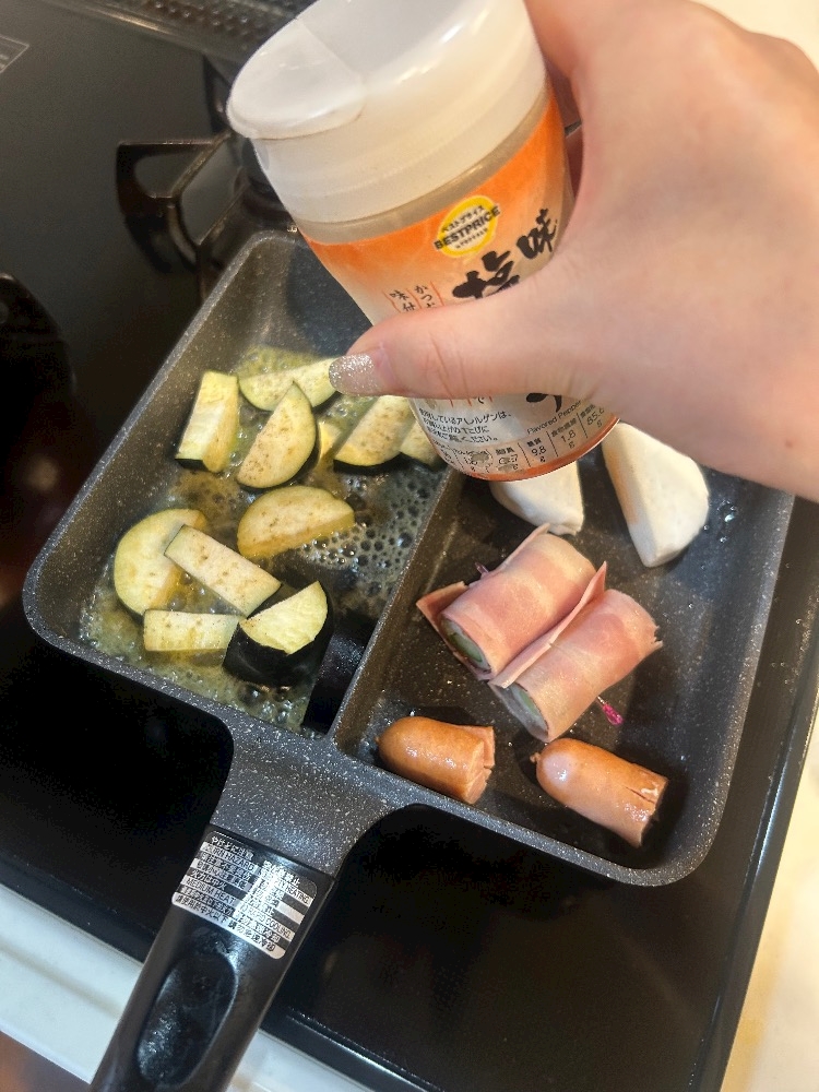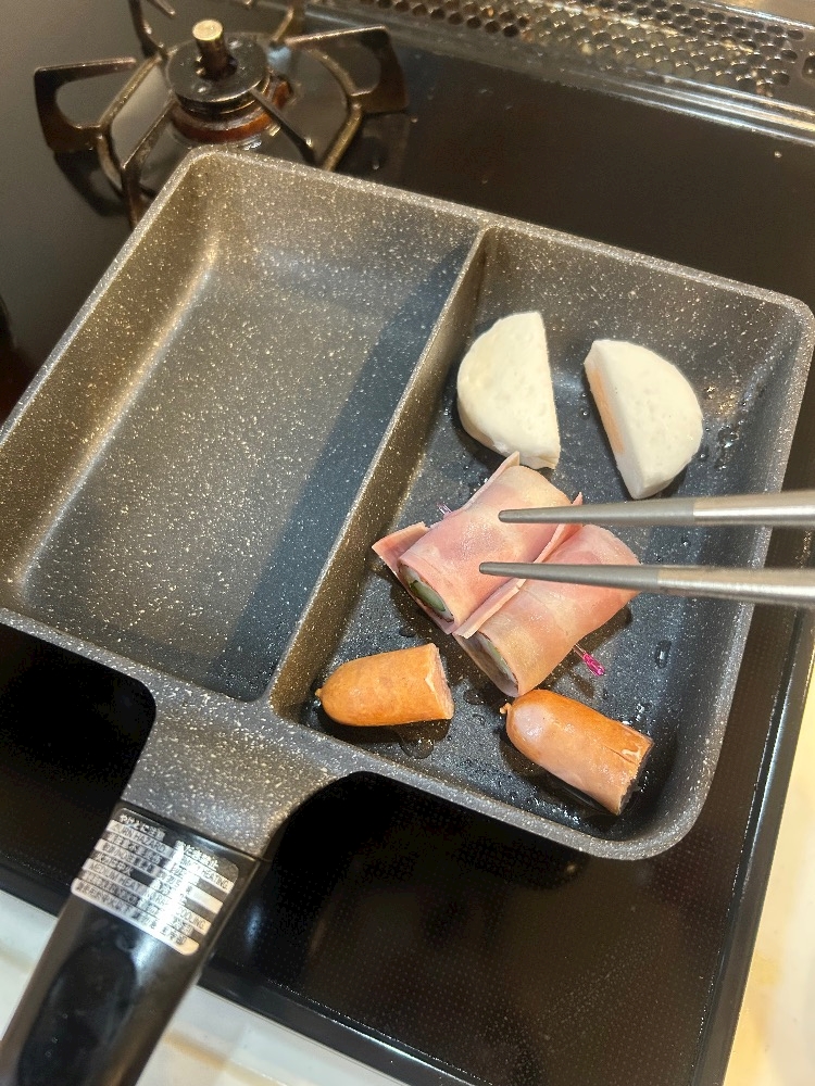 仕切り用のフライパンを