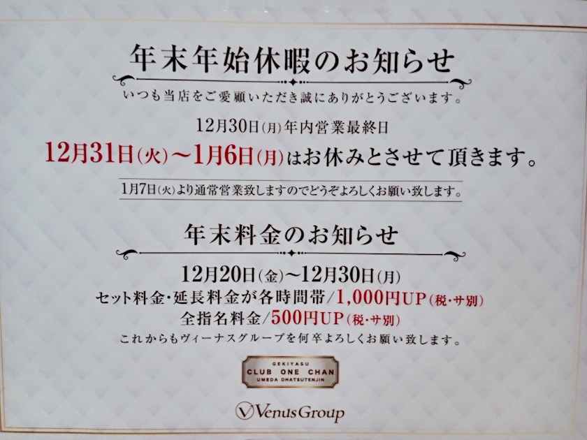 【梅田】CLUB ONE CHAN 梅田堂山