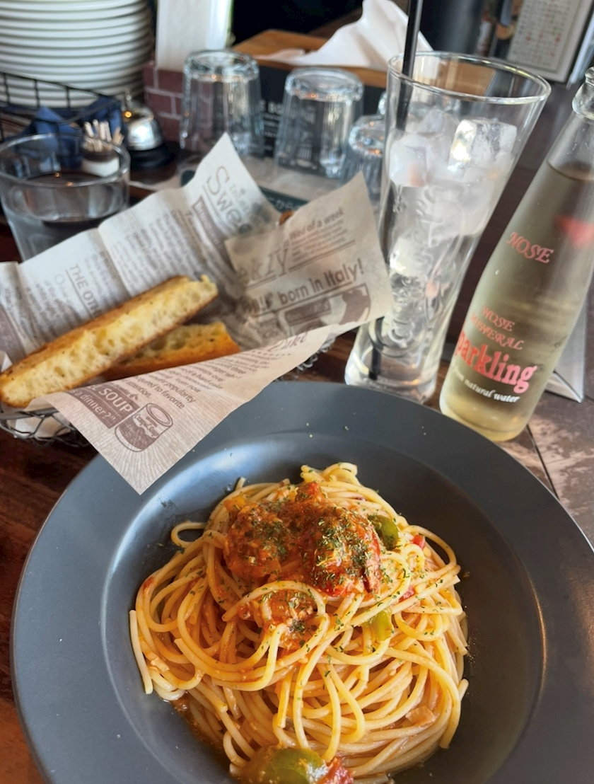 たまに食べるパスタうまー!