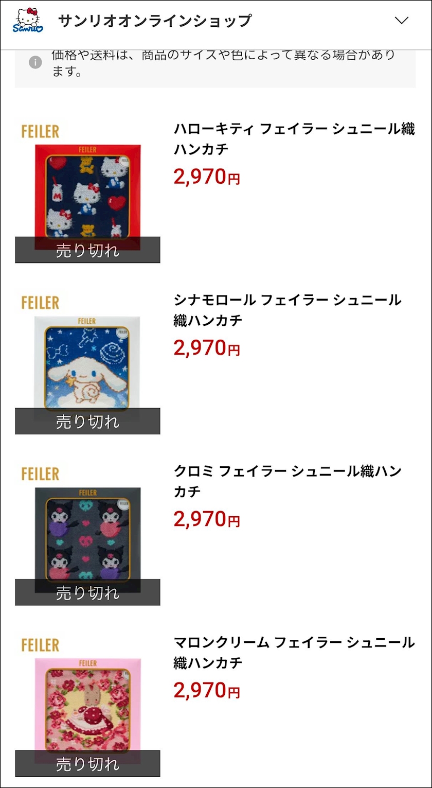 FEILERのサンリオコラボハンカチ…