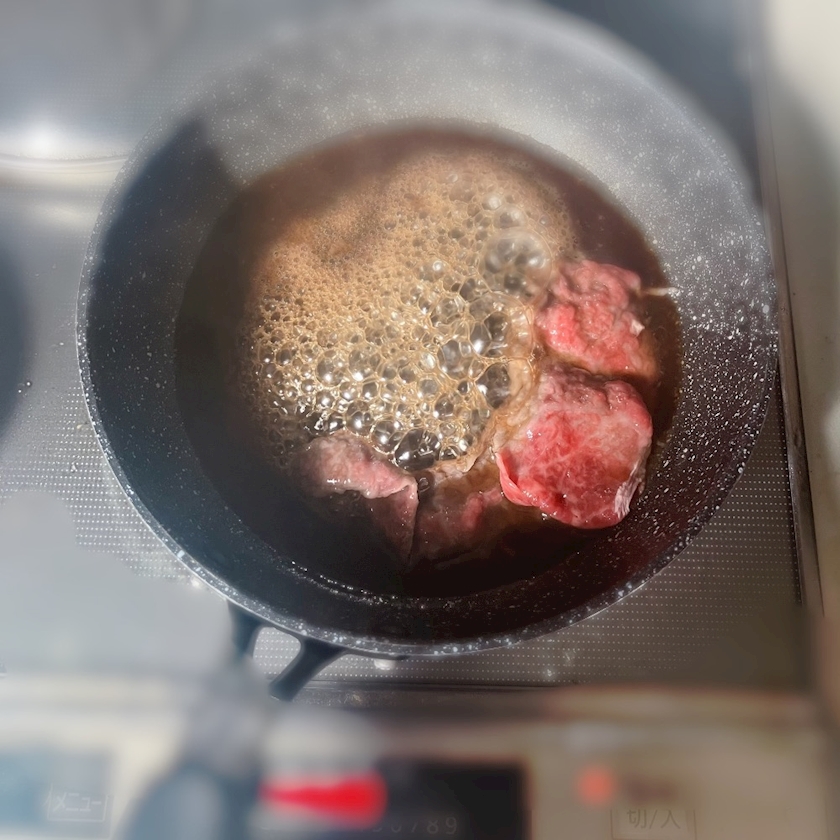 仕方なく朝に一人で立ちすき焼きしました