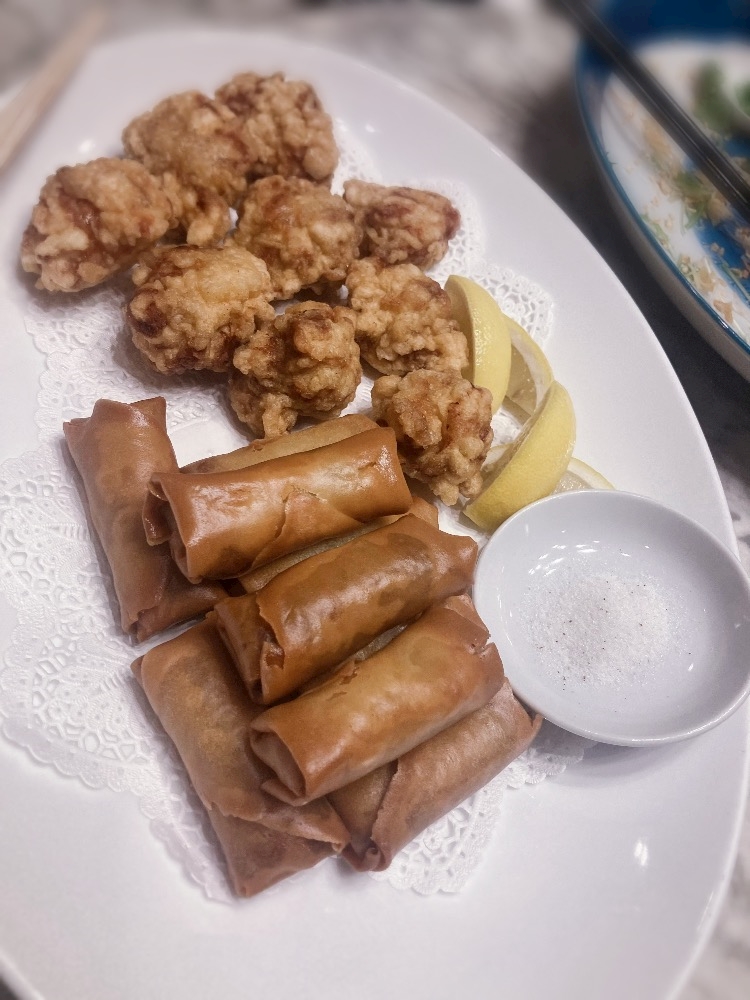 唐揚げと春巻き