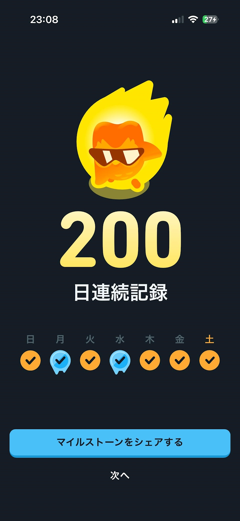 Duolingo200日超えた!