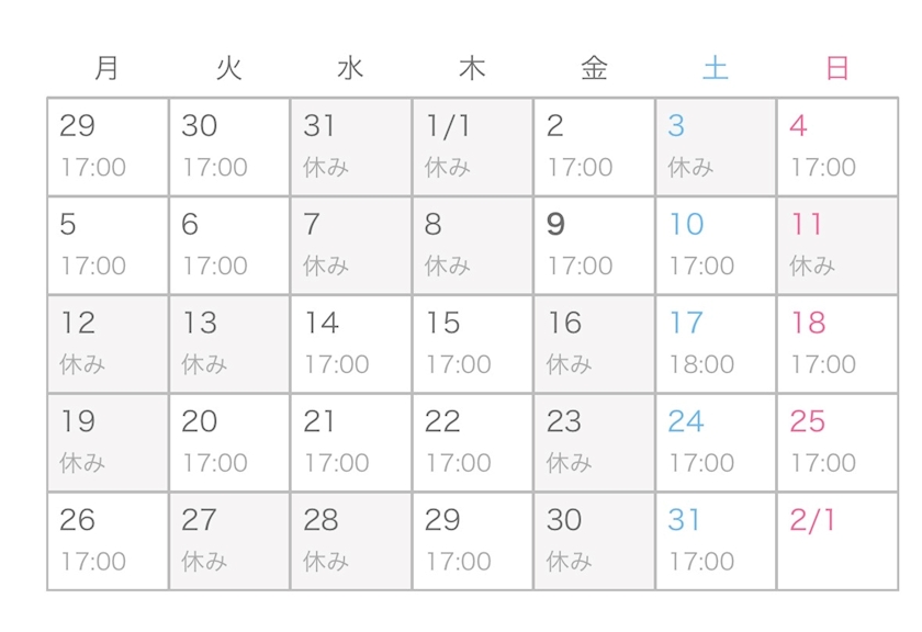 ⬇️1月の今のところシフト★