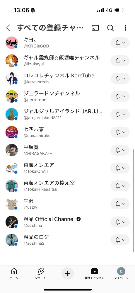 登録チャンネル見ると