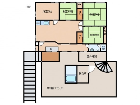 玄関を出て通路を歩いた先にあるんです。