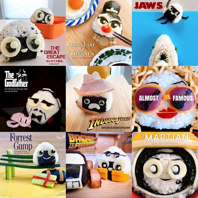 名作映画の9作をおにぎりで表現されてて