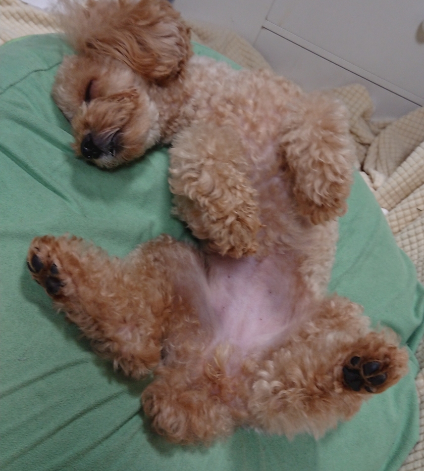 今日のお犬様🐩は、ノーキューピーちゃんでご就寝😌🌃💤