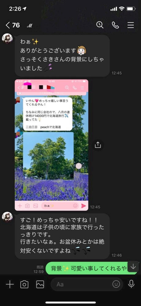 クオーレのみれいちゃんからLINEで