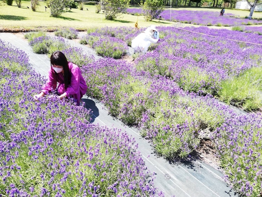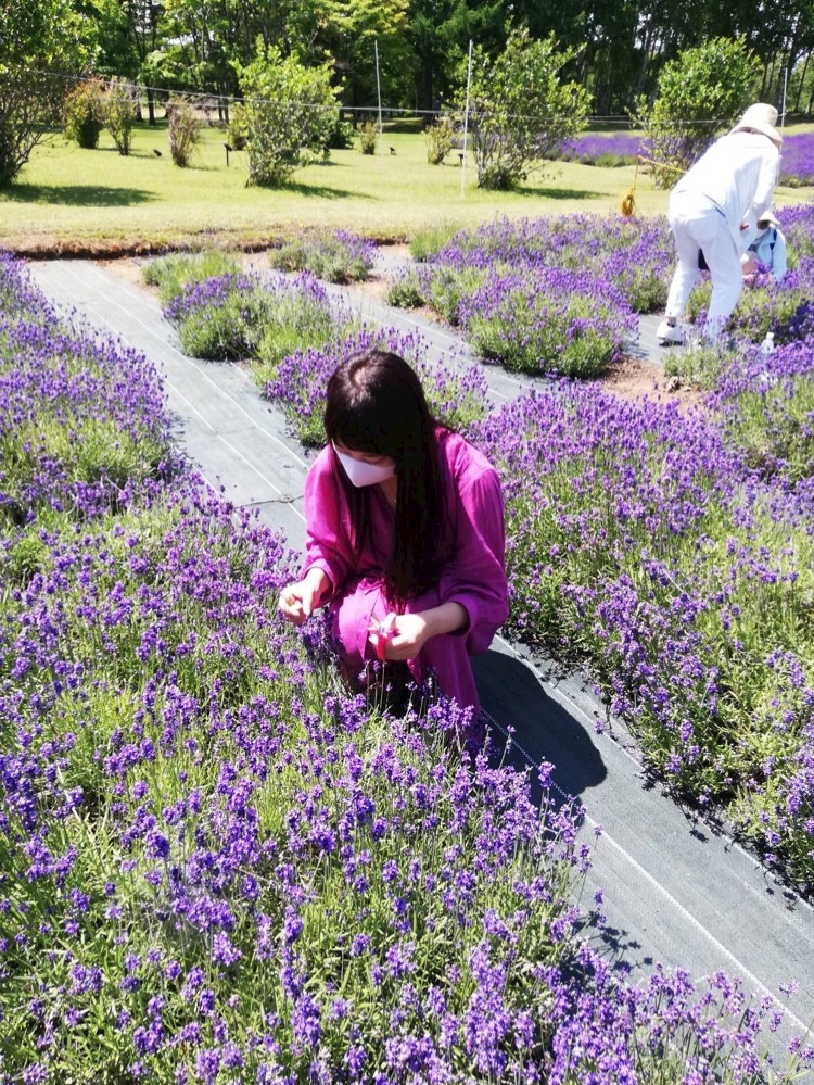 真剣にラベンダー摘みしてました