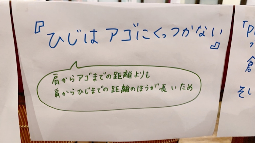 肘をあごにくっつけるしぐさ