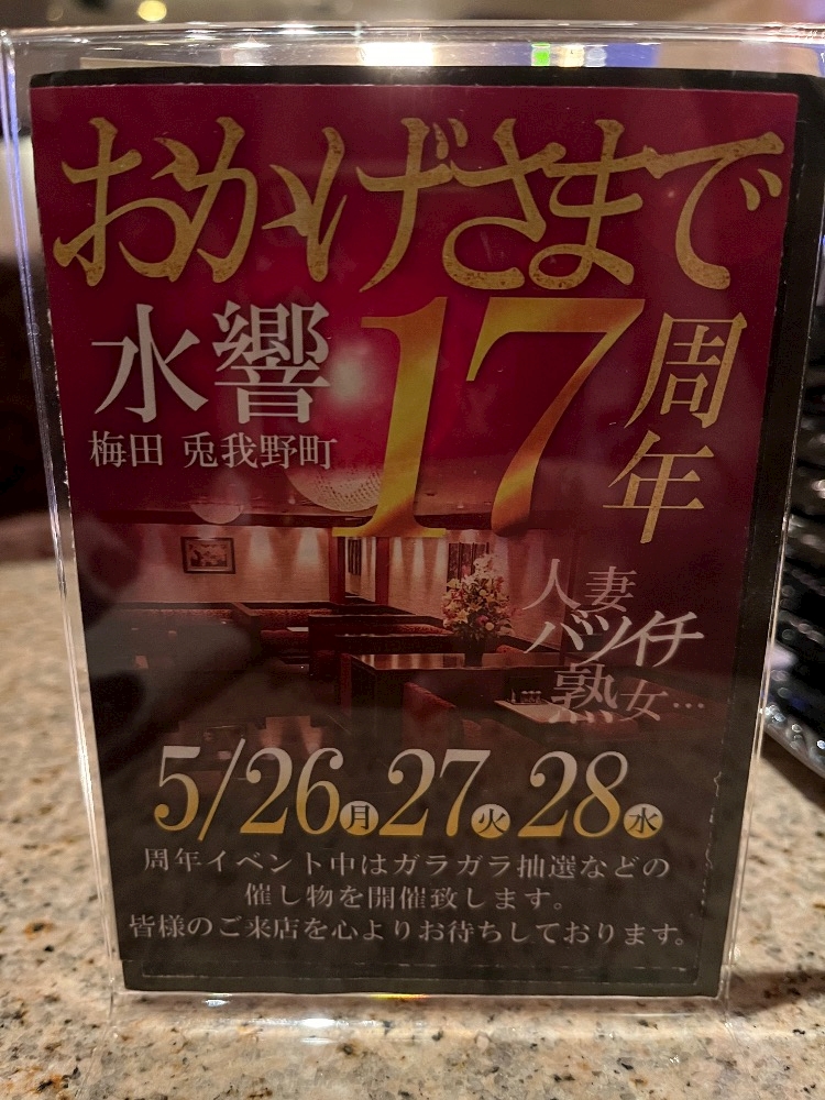 17周年🎉 - ❤️ゆめ❤️ - 大阪 梅田 熟女キャバクラ・水響
