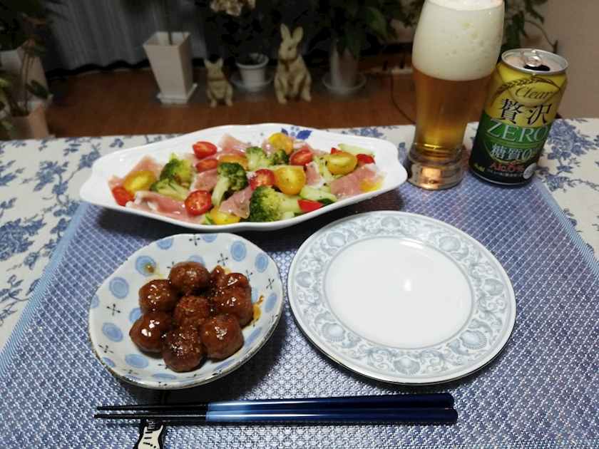 生ハムとブロッコリーと