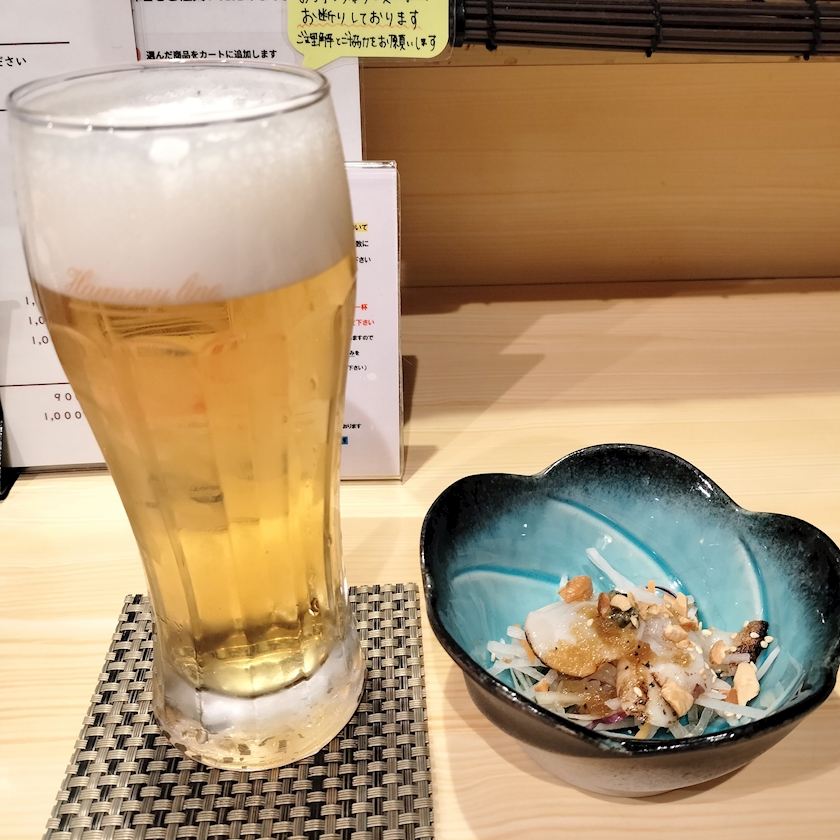ビールと生タコの前菜
