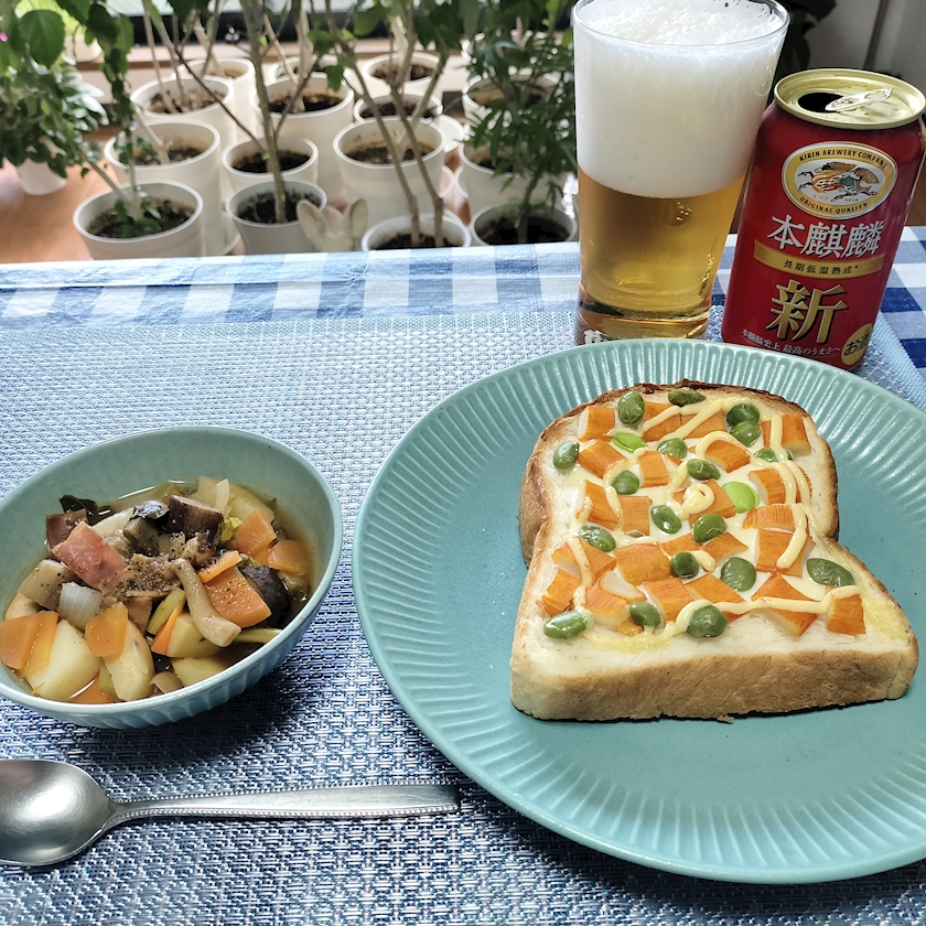 トースト(カニカマ、枝豆、チーズ)を