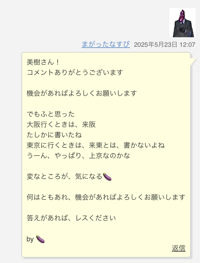 まがなすさんからもお返事が🍆📝