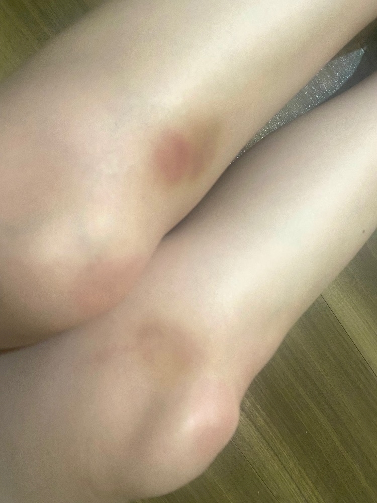 起きたら足にアザがいっぱい出来てた😭笑
