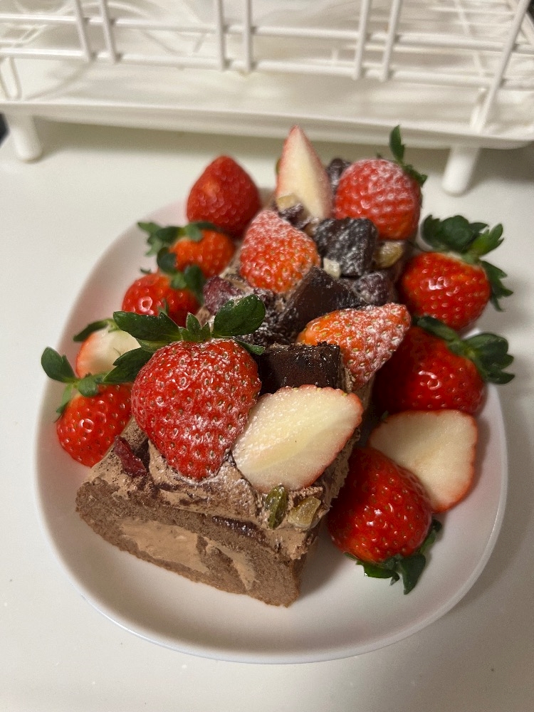 ロールケーキデコってそれっぽくしたやつ😮💨😮💨😮💨