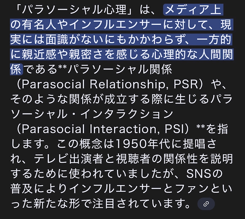 「パラソーシャル効果」っていう心理現象に近いらしい^_^、