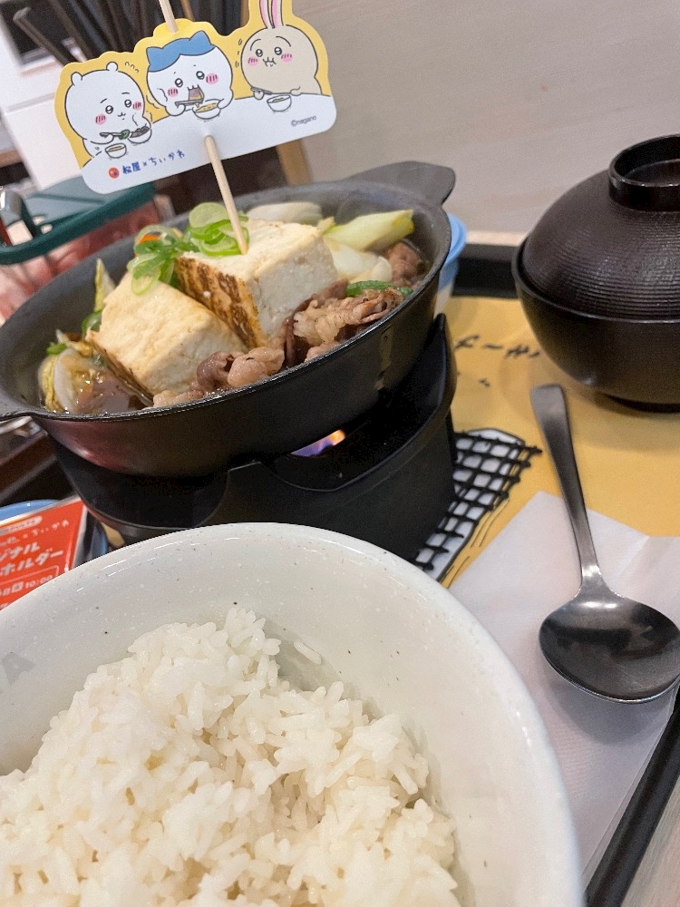 そう、例のちぃかわコラボのすき焼き鍋膳オマケ付きを食べてきました。
