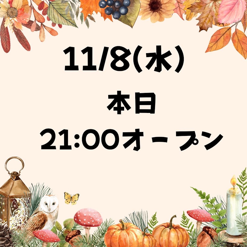 本日は21:00オープン