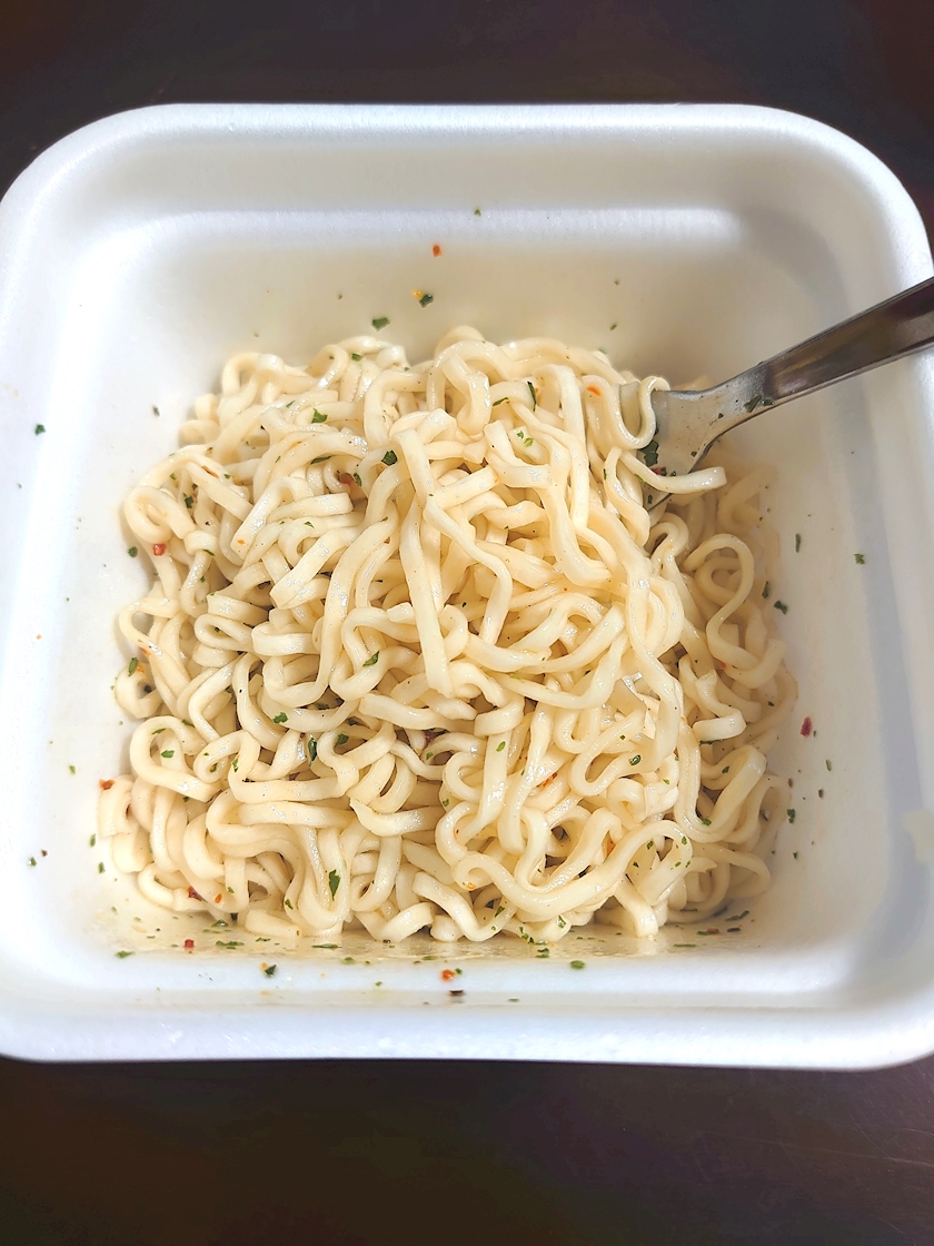 湯切りして粉末スープを