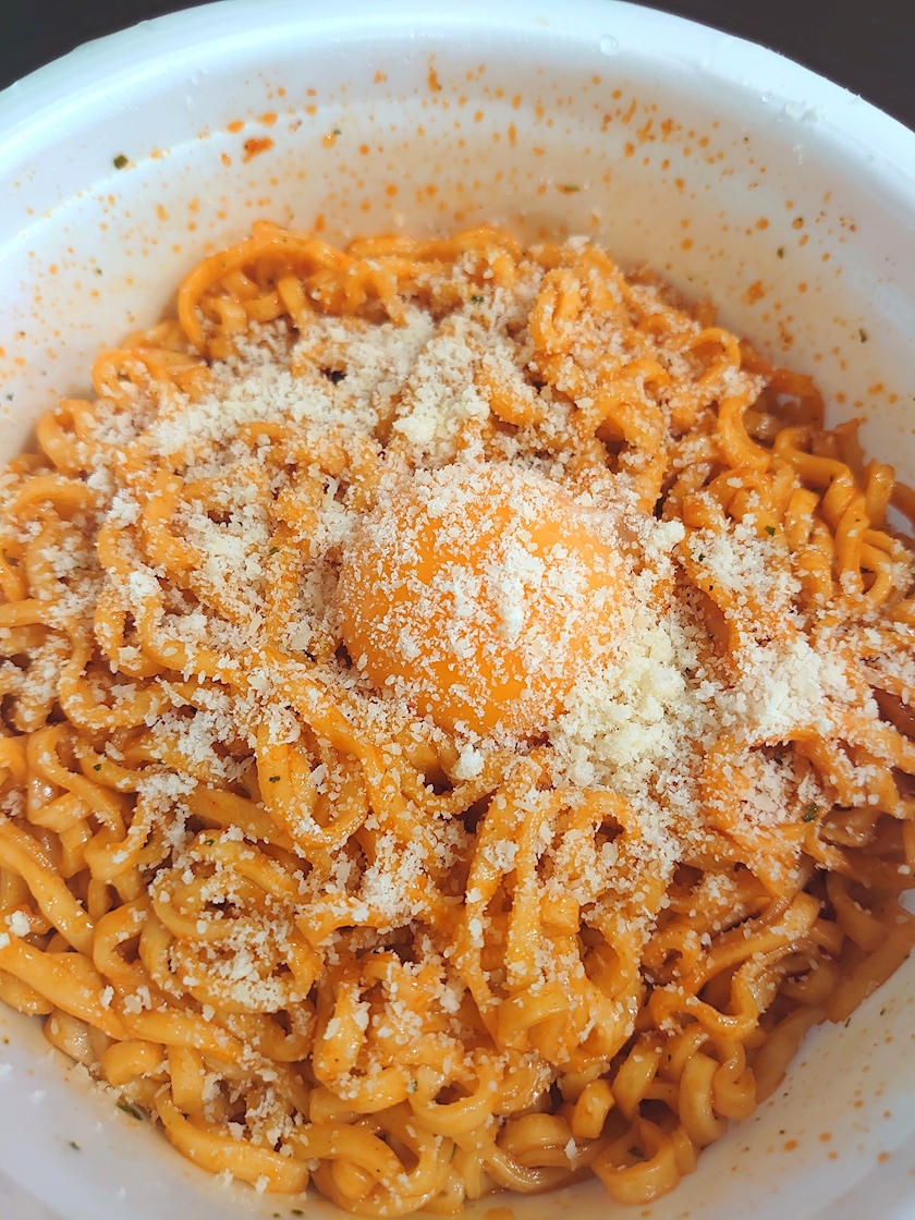 卵と粉チーズもかけて
