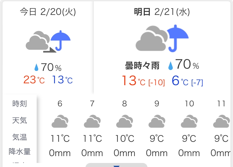 昨日と今日の気温差が