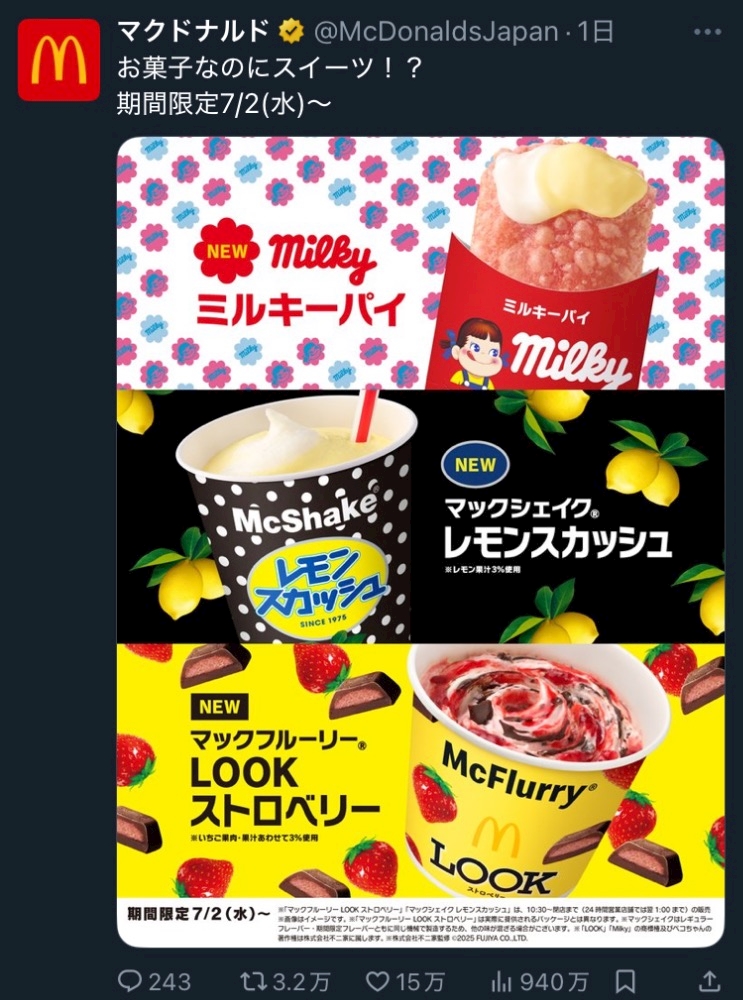 7月なったらマクド行かなきゃ🥰みんなが知ってるお菓子のコラボやん💖美味しそうー😋食べたい!!