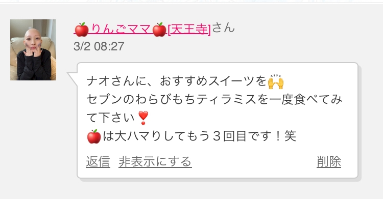 こんばんは💖本日も元気に出勤してます😆✨出勤報告の前にちょっとコン活ブログを💖有名🍎なあのママがおすすめしたスイーツを食べたよー✨💖 - nao - Lily・リリィ - 天満のスナック
