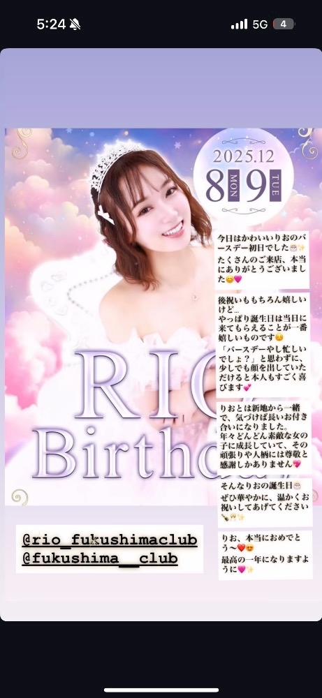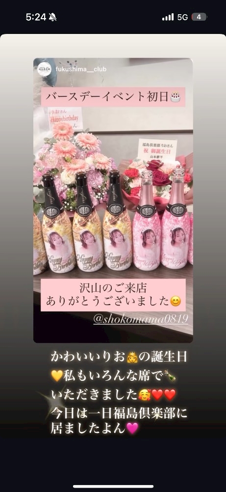 今日はかわいいりおのバースデー初日でしたいたくさんのご来店、本当にありがとうございました🩷