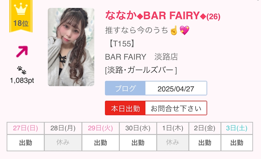 名前:ななか◆BAR FAIRY◆(ナナカ) [27才]