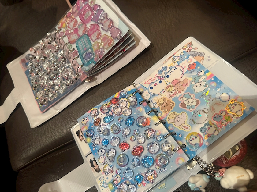 - シール帳にハマってるうーさん、キングさん
