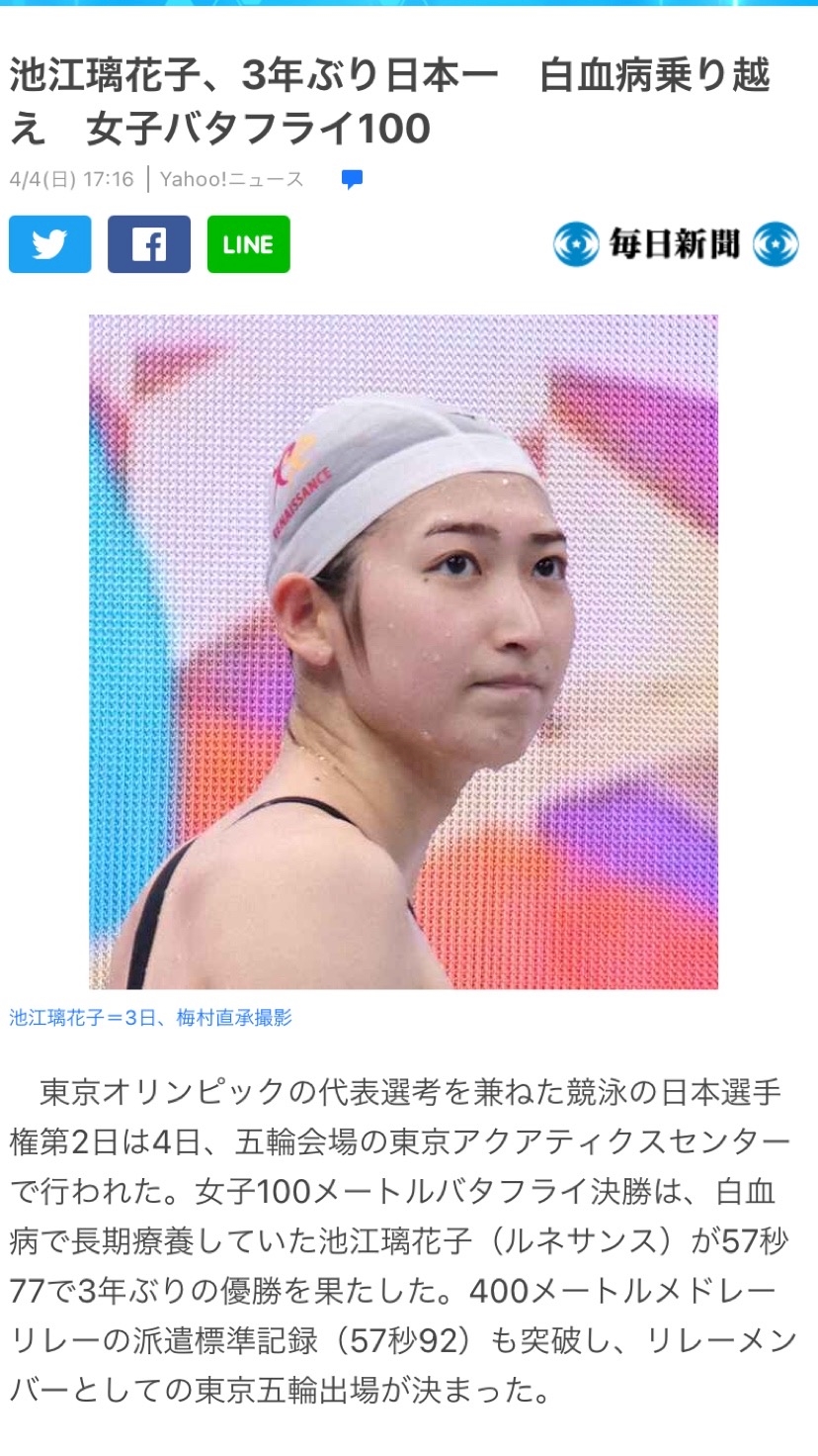 池江璃花子選手の