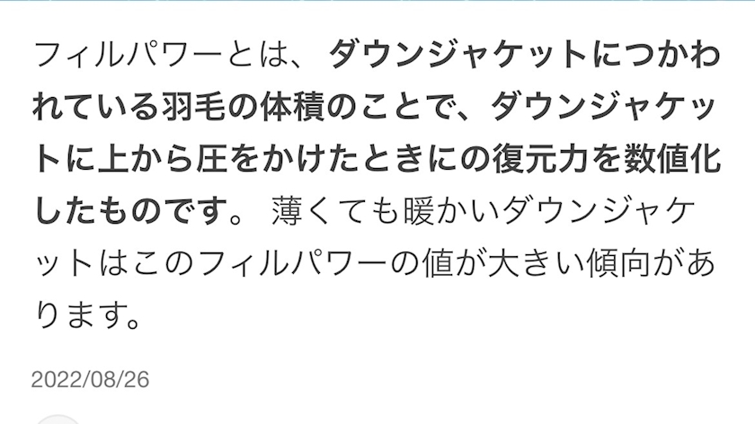 前もブログに書いたフィルパワー