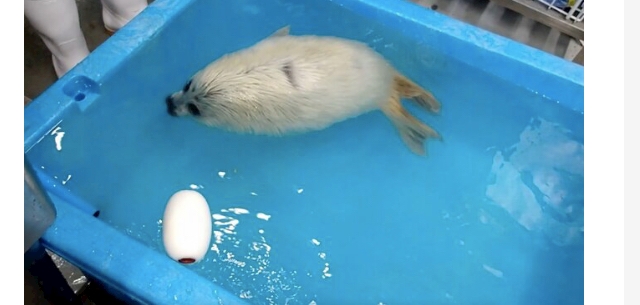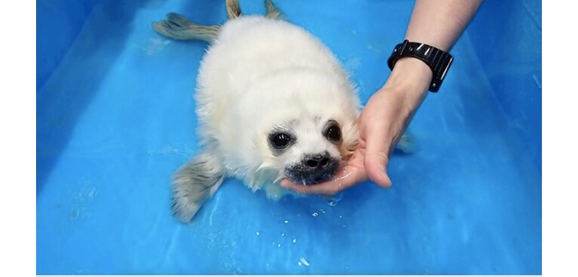 「アザラシなのに泳ぎが苦手? “初めての水”にくしゃみ連発…赤ちゃんアザラシの反応がかわいい」