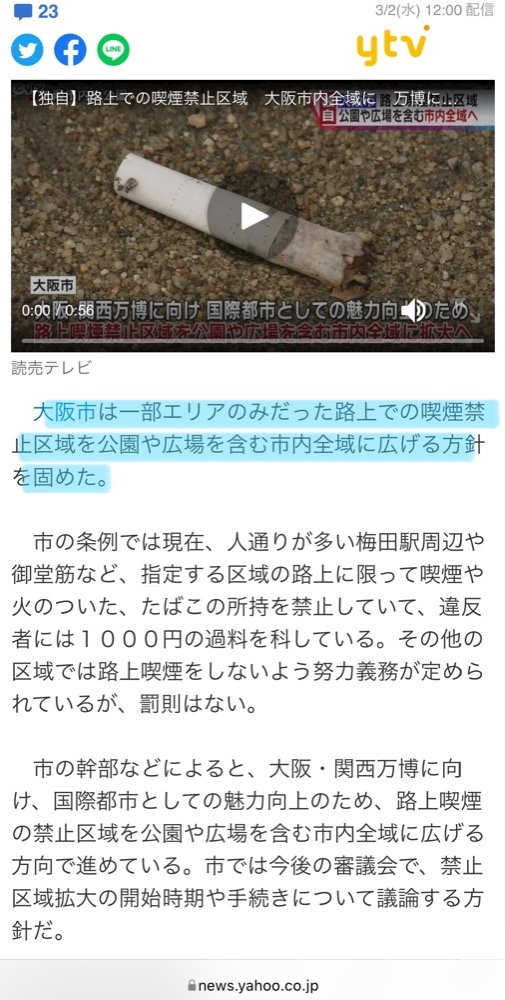 人通りで歩きながら吸う方捨てる方