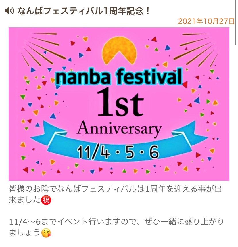 皆様のおかげでなんばフェスティバル1周年です㊗️
