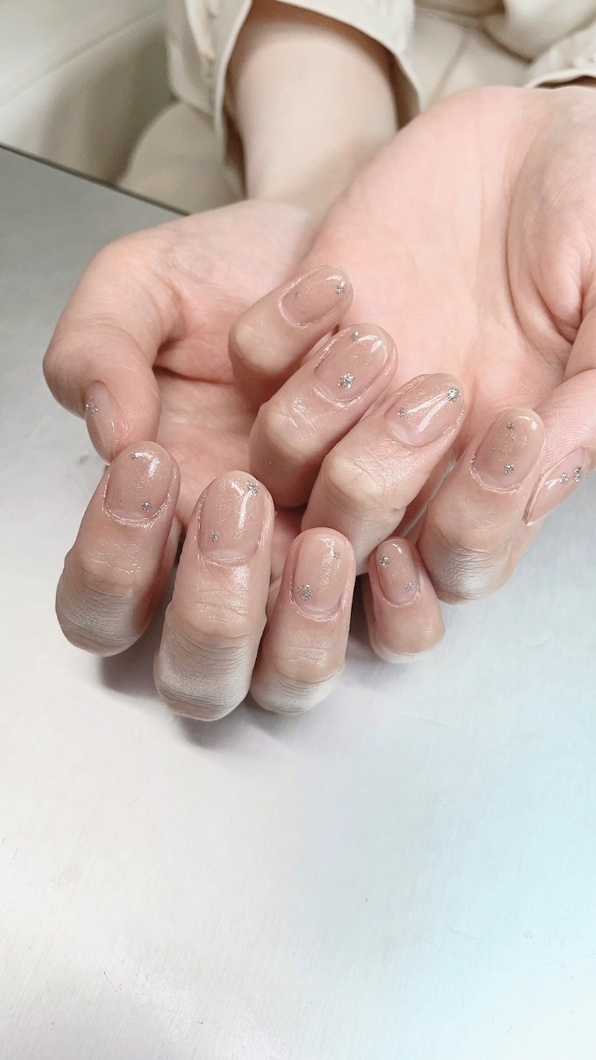 今月も可愛いネイルにして頂けて、何よりすごいのはお昼の仕事上ストーン付けれない代わりにラメでストーンに見せれるのすごいよね😳🥺