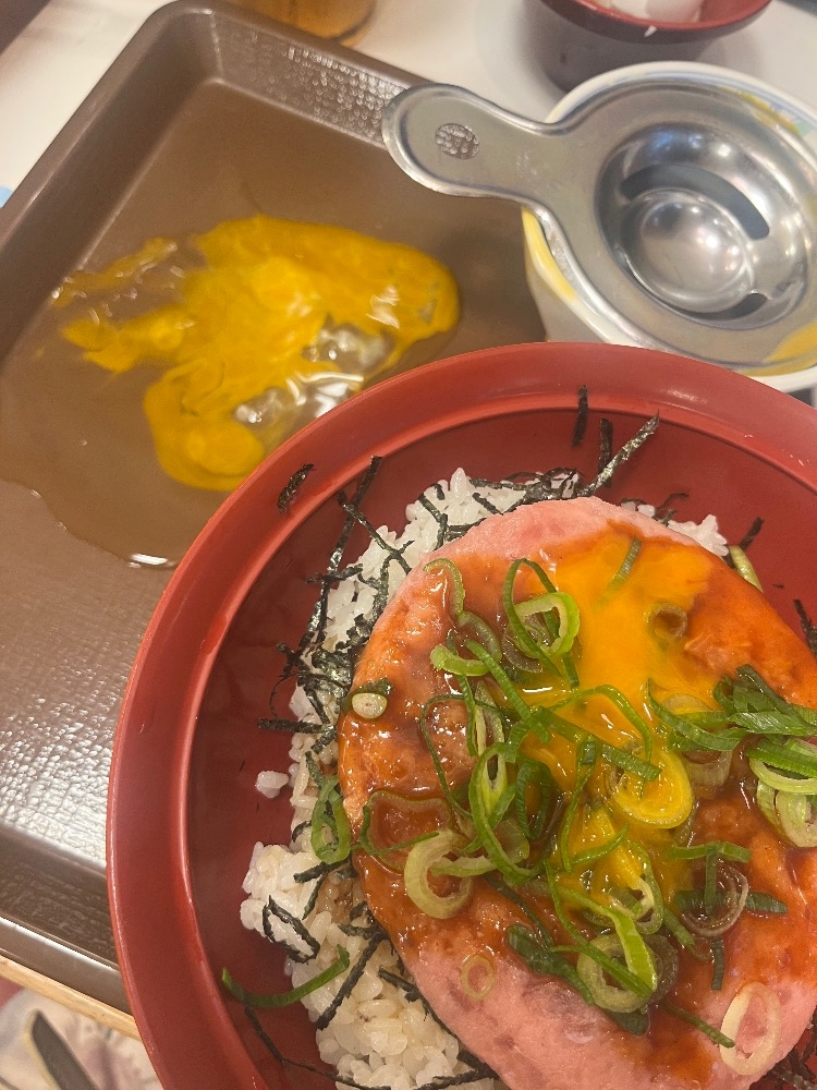 だからまたそこからしばらく歩いてなんフェスちかくのすき家来てやっと食べれる🥹思ってわたしの大好きなまぐろユッケ丼頼んで卵を割って乗せようととしたら、、