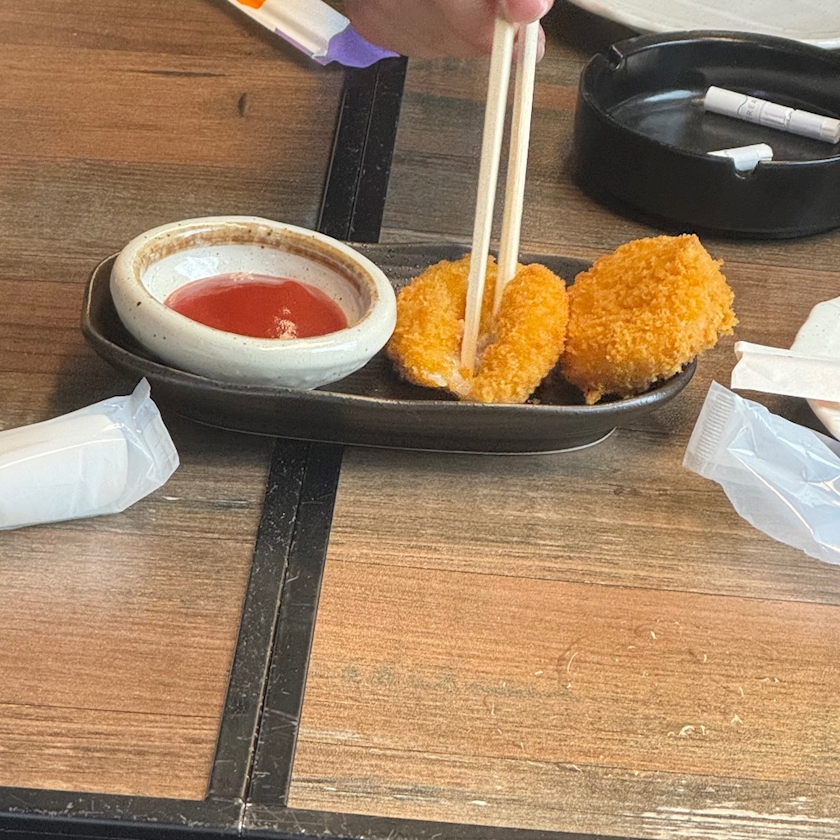 下立ってたら常連さんがエイトで食べててカニクリームコロッケ頼んでくれて