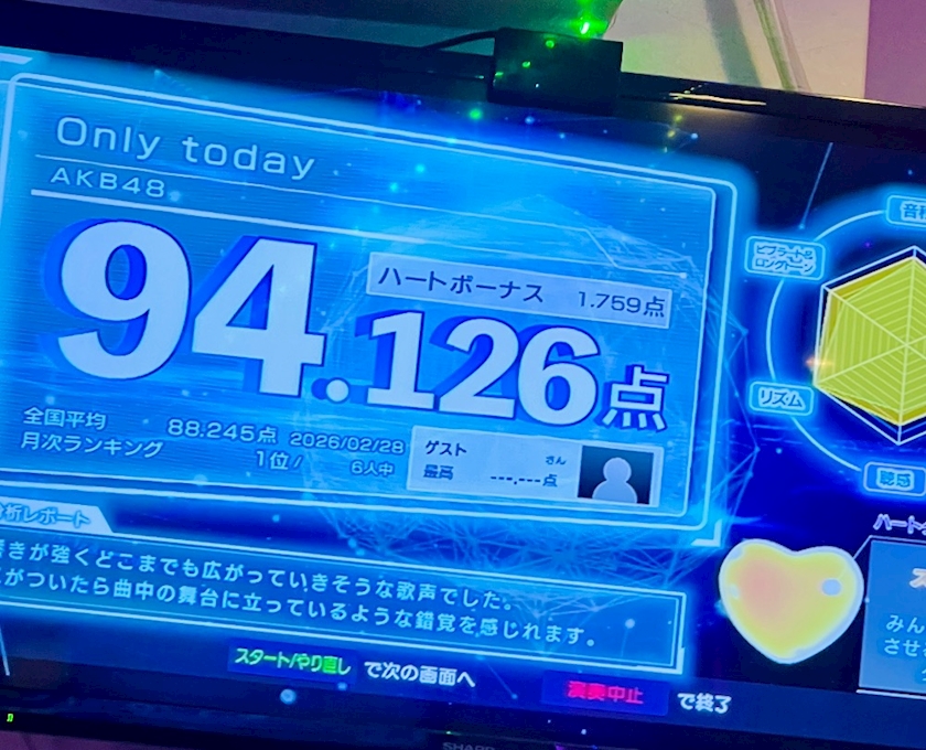 気持ち良くカラオケも歌わせてもらい