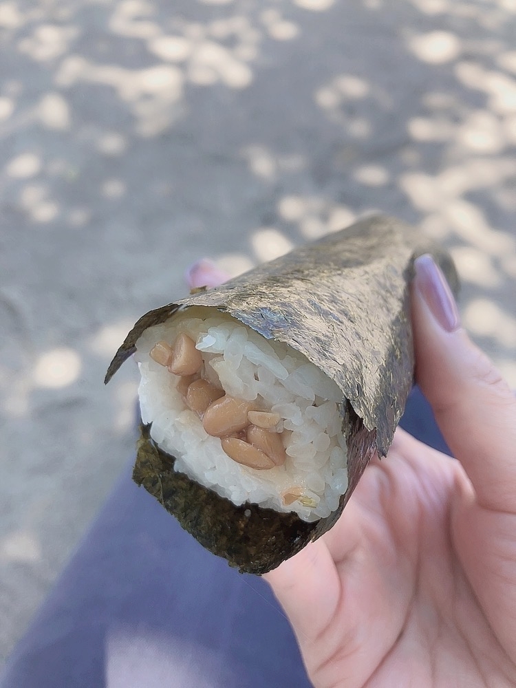 木漏れ日の中で食べた納豆巻き😆
